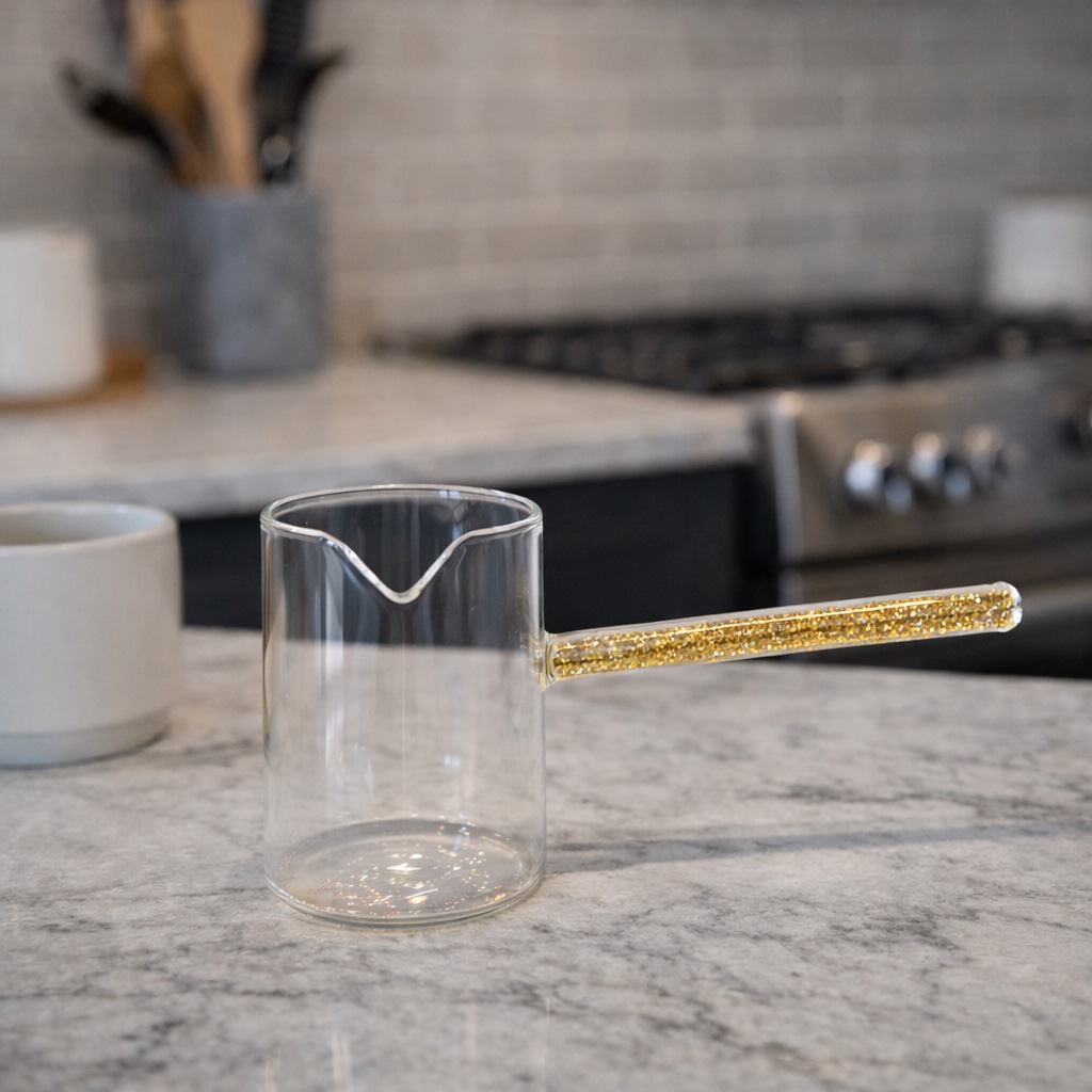 Staklena džezva sa šljokicama 300ml